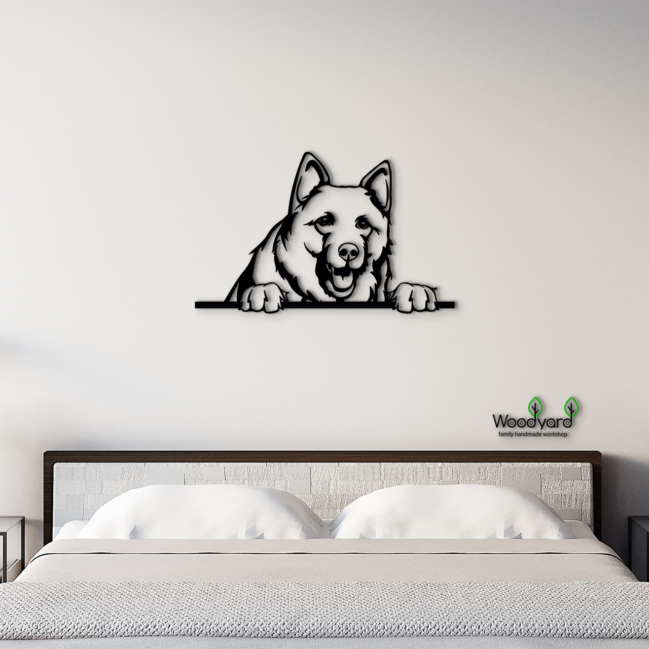 Купити неповторне лофт панно/картину - "Норвезький елкхаунд" з дерева. Доставка по Україні 1-3 дні.
